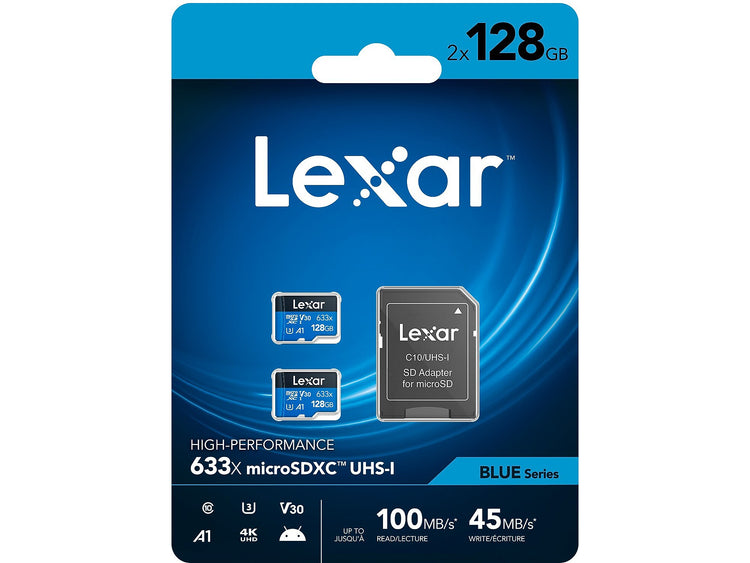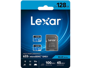 Lexar High-Performance 633x BLUE Series 128GB microSDXC Memory Card with Adapter, Class 10, UHS-I, V30, 2/Pack