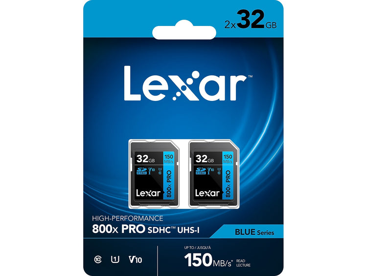 Lexar High-Performance 800x PRO BLUE Series 32GB SDHC Memory Card, Class 10, UHS-I, V10, 2/Pack (LSD0800P032G-B2NNU)
