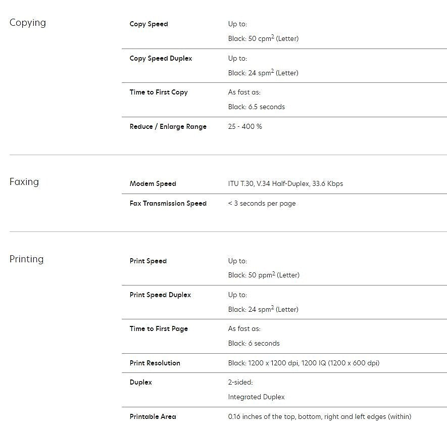 - Print Speed: Up to 50 ppm