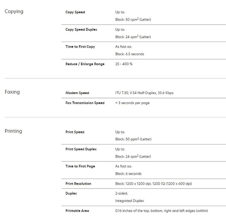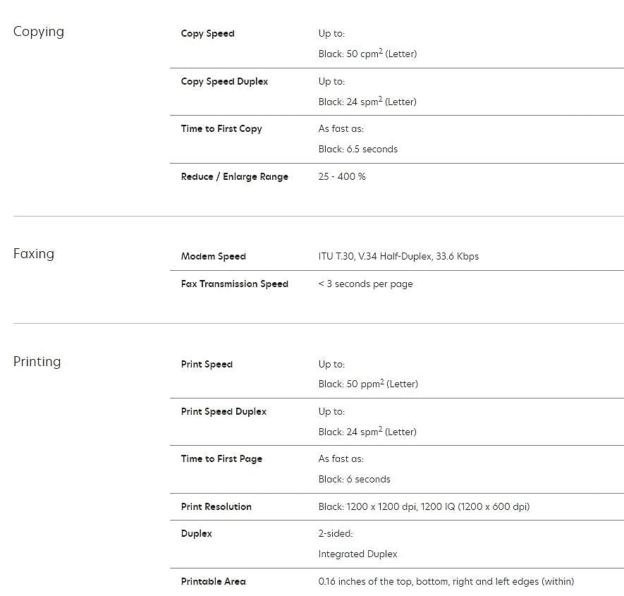 Increase productivity with optimized performance. Print at up to 50 pages per minute* and capture information quickly with scan speeds of up to 52 images per minute for one-sided scanning, and up to 104 images per minute for two-sided scanning.