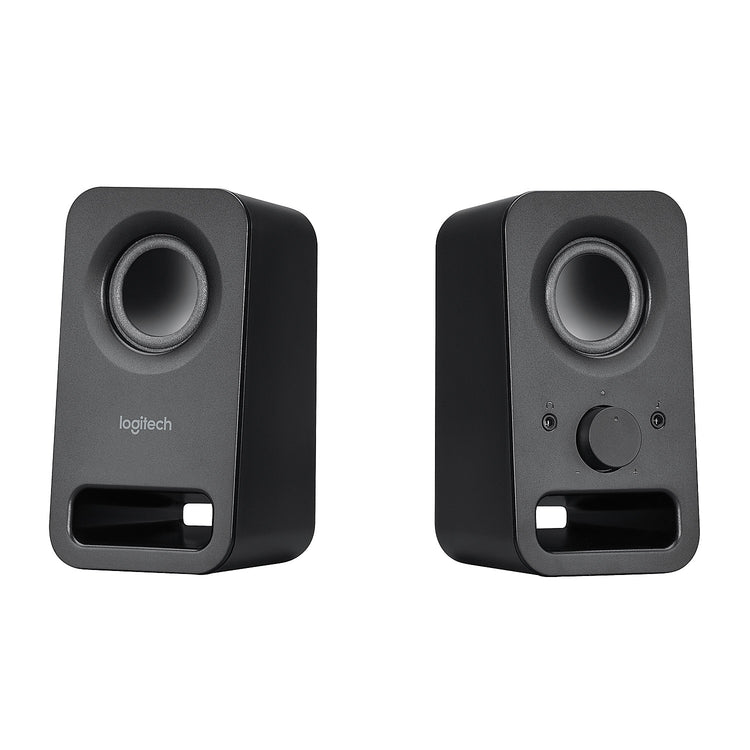 Hear every word of presentations and video calls with the exceptional audio quality of these Logitech Z150 stereo speakers. These compact speakers fit easily on desks and feature dual 2-inch drivers that enhance your listening experience by delivering detailed, natural audio with a peak power of 6 watts. Intuitive controls on the right speaker offer easy access to the power button and volume settings, ideal for on-the-fly adjustments. These Logitech Z150 stereo speakers offer a private listening experience with a built-in headphone jack.