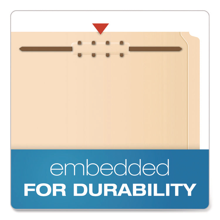 Keep documents safe, secure and properly filed with Pendaflex® Manila Fastener Folders. Super-thin fasteners on the inside face of the folders' covers accommodate two-hole punched papers, making it easy to subdivide documents and/or order them in sequential order as well as ensure that important documents remain in their proper place without unnecessarily bulking up files when the fasteners aren't required. An under-cut front cover helps the back cover's reinforced tab stand out, making both labeling and in-cabinet referencing easier.