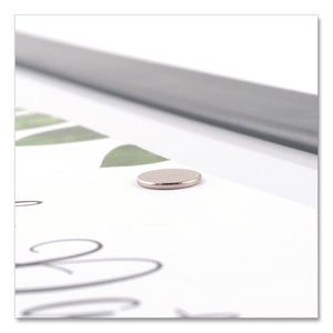 Post announcements, bills or visual aids on whiteboards with these round magnets. Their high-strength build provides sturdy placement of thick paper and card stock onto magnetic surfaces. Also suitable for marking, plotting line graphs and making DIY fridge decor. High-power magnets hold documents and signage to magnetic boards and signs. Each disc shaped magnet is 3/8" in size for discreet use. For use with boards and signs. Silver.