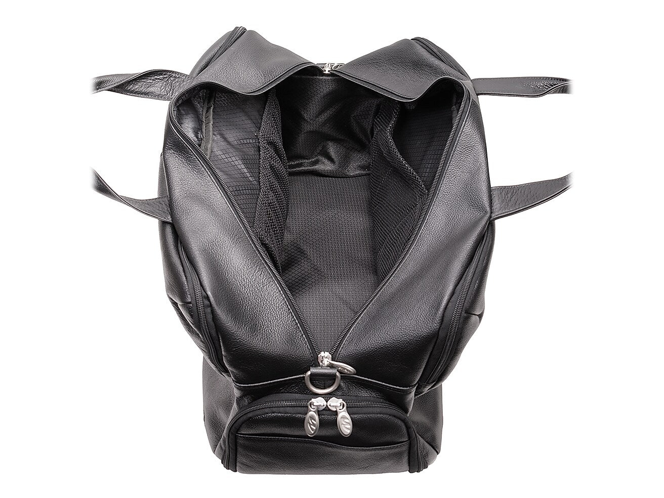 A true modern all-purpose McKleinUSA U Series AVONDALE 22" travel duffel bag is capable of carrying everything in its spacious compartments. Carrying in comfort and stability with the conveniently designed double snap handle wrap. Easy access to travel essentials through the full-length front vertical zipper compartment. The bag is fully lined with leather accents and silver hardware to make storage easy and pleasant. You can keep your cell phone and keys in the front compartment's business accessory organizer. The middle compartment is amazingly roomy with front and back elastic pockets to store your toiletries and shoes. The back compartment features a 17" laptop/tablet pocket and a file divider to keep all your important devices and documents secure. Carry in comfort with the full-length, adjustable, non-slip, detachable leather padded shoulder strap. Set it down with confidence on five protective feet. Convenient side shoe pocket for extra kicks and comfort.
