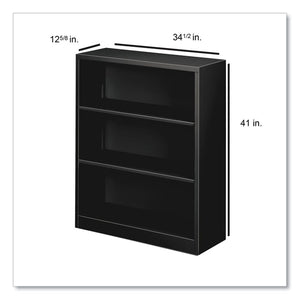 Metal Bookcase, Three-Shelf, 34.5w x 12.63d x 41h, Black