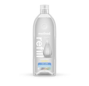 The Method hand soap refill is full of naturally derived gel hand wash to refill your bottle nearly three times. Because the only thing worse than dirty hands is employing jeans-wiping as an interim solution. This adorably cubby tub packed with plant-based grease-cutting power is made with 50% recycled plastic and designed to be recycled again. It's a sudsy cycle of goodness. Easy to use: remove the lid from your gel hand soap bottle, and carefully refill, leave about an inch at the top if you have a pump bottle. Replace the lid, pump a few times, and you're back in dish business.