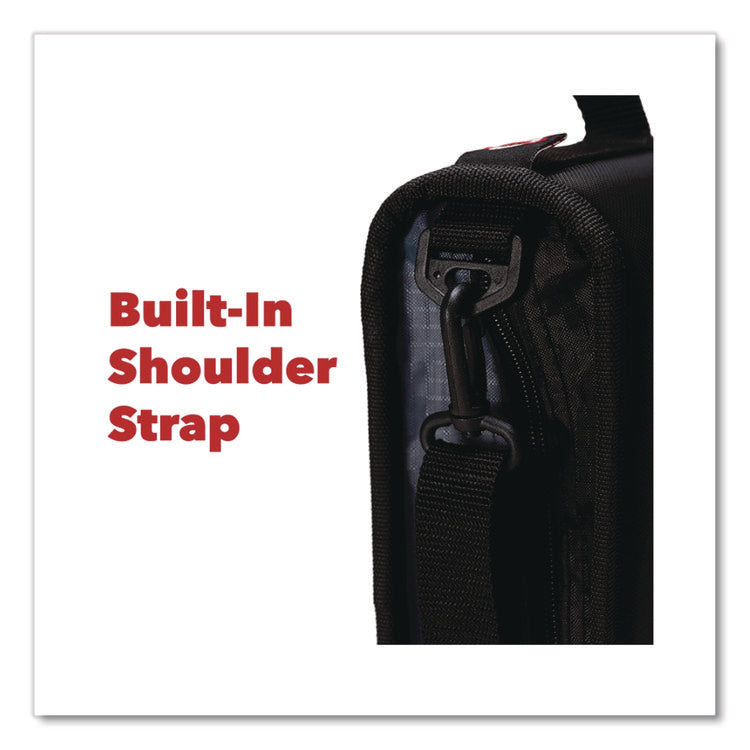 Perfect for organizing all of your classroom essentials. Inside is a 5-tab, 6-pocket expanding file folder to keep all of your important papers secure and organized. You will also find an interior zippered mesh pocket which is perfect storage for your pens and pencils. Large exterior zippered compartment allows you to store other personal items. Patented angled zipper keeps the gusset out of the way when writing. Comes with a handle and shoulder strap enabling ease of transporting materials. Binder gusset is made of Ripstop material, which prevents tearing. Binder is constructed of sturdy Kraft Board--strong enough to last the school year and prevents warping. Unique organizational tools for school or home use.