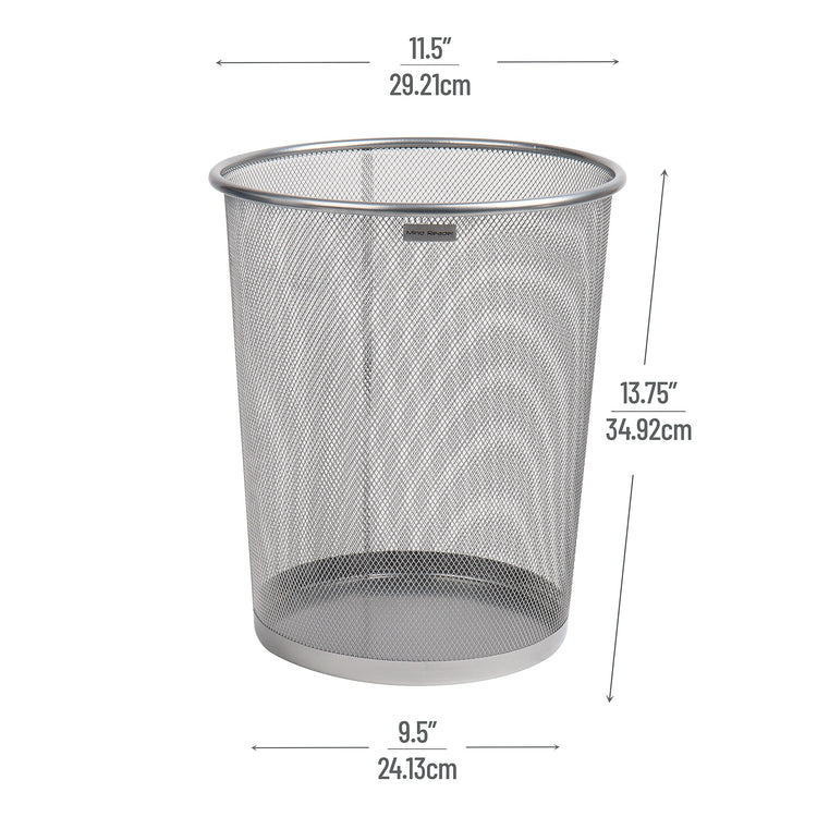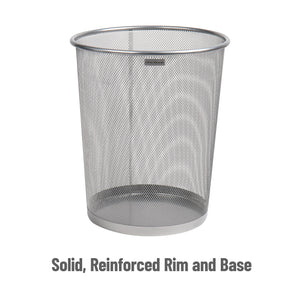 Bring sleek, industrial style to your office, bathroom, or kitchen with this metal mesh garbage can. Its mesh design promotes airflow, reducing unpleasant odors and build-up, while the solid metal edge at the bottom collects small amounts of liquid to prevent spills. The steel mesh is reinforced at the top and bottom for durability, and the smooth rounded lip at the top adds a touch of elegance. This lightweight, easily portable basket can be moved from room to room as needed, fitting seamlessly into a variety of spaces. It is designed to fit easily under a desk or inside a cabinet, offering convenience and flexibility in your waste disposal. Designed to work with or without liners, this bin can be hand-washed with warm soapy water for easy cleaning. The stainless steel construction helps maintain its freshness over time. One of the great advantages of a mesh design is its transparency, which allows you to see how full the bin is without needing to open or check it. No more guessing with opaque garbage cans - switch to mesh and manage your waste more efficiently!