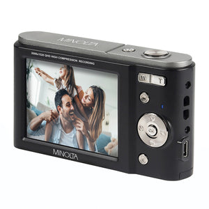 Preserve the moment with Minolta's MND20 Digital Camera and its high-resolution photos that are suitable for cropping or enlarging thanks to the 44 MP photo resolution. And its 2.7K Quad HD video gives your video greater vividness and clarity than standard-definition video. Featuring a compact size with anti-shake stabilization, you can easily compose shots and review photos with the 2.9-in. LCD monitor. Capture close-up details or shoot from a distance with the 16x digital zoom lens. Intelligent scene modes and features like smile capture and photo burst make shooting the ideal shot easy and fun.
