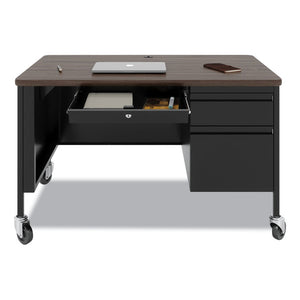 Mobile Teachers Pedestal Desks, Right-Hand Pedestal: Box/File Drawers, 48" x 30" x 29.5", Walnut/Black