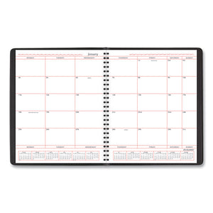 Cool design with Monday start provides a great way to see your weekends together. Premium paper resists ink bleed. Perforated memo section for easy tear-out notes. One month per two-page spread with unruled blocks and full-year calendar reference across bottom. Indexed telephone/address section.