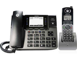 This Motorola business system bundle is perfect for your growing business. This system supports one to four lines, includes a corded base station and a cordless handset for added mobility and flexibility around the office. It has such high-end features as a digital receptionist to route calls to the correct person, digital answering system with up to 200 minutes of record time, music on hold so your customers can listen to customized music and extension status indicators, that's why you can always see who is on the phone. It also includes a full-duplex speakerphone, call conferencing, and many more features you will want. This bundle is the answer to your office communication needs.