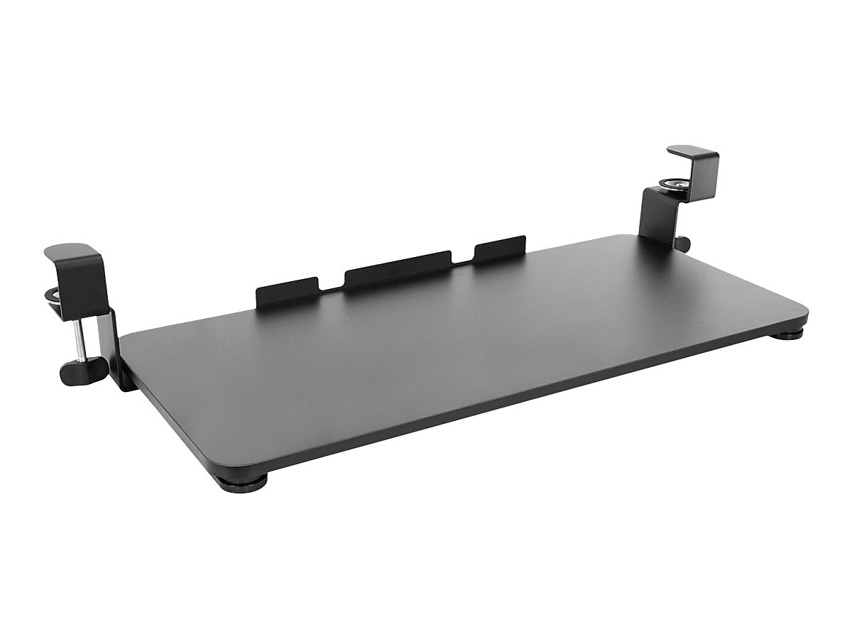 The clamp-on keyboard tray saves space by mounting your keyboard underneath your desk. Improve ergonomics by correctly positioning your elbows and wrists at the optimum height. The mount allows you to maintain a neutral working posture by positioning your keyboard and mouse lower and closer to your body. Easily position the mount by pushing or pulling the plate to adjust it. This mount eliminates the need to drill into your desk.