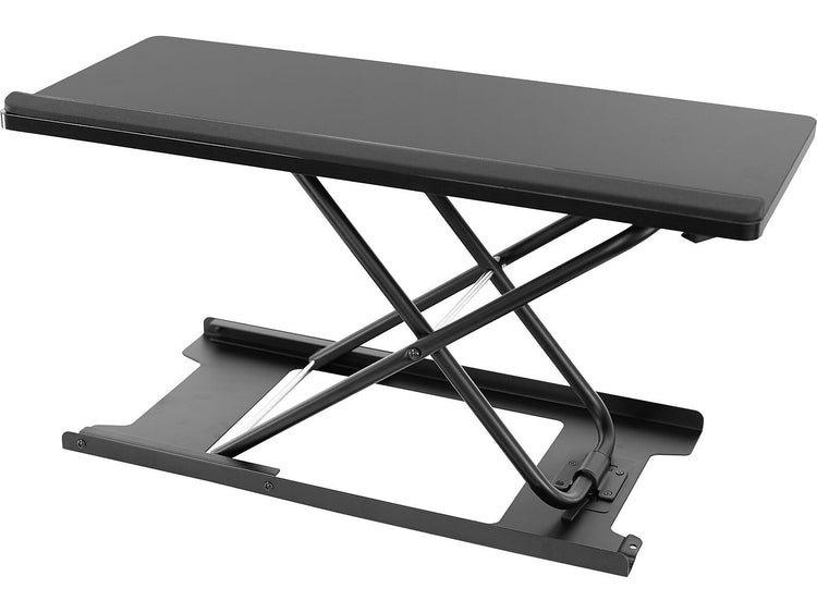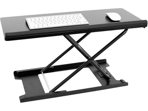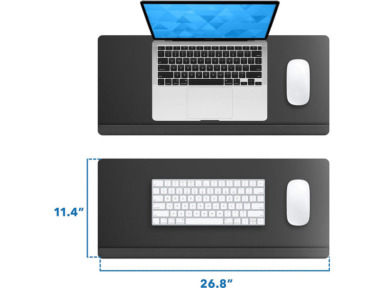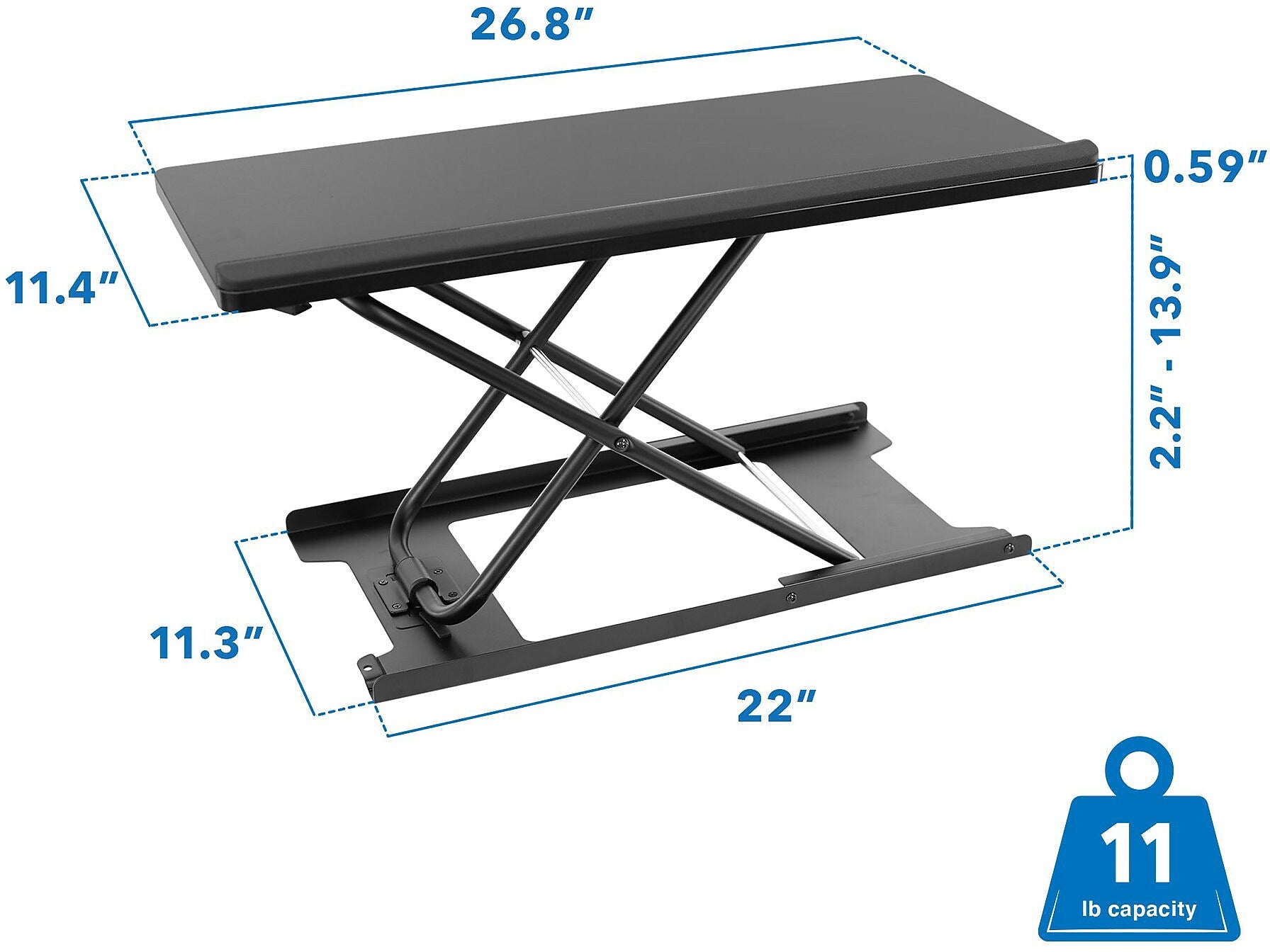 Mount-It! sit/stand keyboard and mouse platform suits a variety of needs and heights. Adjust the platform down from 2.2" while you sit, and raise it up to 13.9" to stand. The top measures at 26.8" wide by 11.4" length, and provides plenty of space for your keyboard and mouse. It's also large enough to fit a 15.6" laptop. Ergonomic posture is important to prevent eyestrain, neck and back pain. Monitors and keyboards should be raised to an ergonomic height to attain healthy posture while working. Standing during your workday will increase your energy, alertness, and productivity, and this height-adjustable desk riser can help you achieve that.