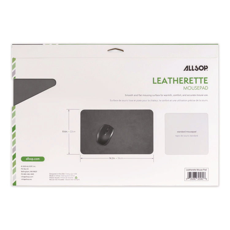 The Allsop Leatherette Mousepad features a large mousing surface for easy movement and a non-skid base to keep the mousepad in place. Enjoy the smooth and soft luxury feel of deluxe vegan leather coupled with classic styling that compliments any home or office. The Leatherette Mousepad surface is easy to clean and the wrapped edge provides a clean aesthetic while resisting wear or fraying.