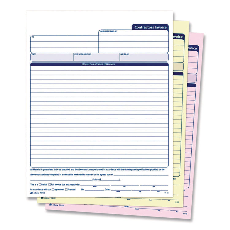 Multipart Contractor Invoice Forms, Three-Part Carbonless, 8.5 x 10.94, 100 Forms Total