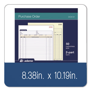 Easily keep hard copy records of each purchase order with the Adams® Multipart Purchase Order Pad. A comprehensive, preprinted layout features prompts for all the important details. With entry areas for purchaser, ship-to and administrative information as well as itemized order details, just about anything one might wish to capture can be accommodated. Carbonless, multipart format lets you provide a copy to the purchaser while keeping copies for yourself, and the pad's wraparound cover also allows you to place the front cover between sets as you fill out a form, minimizing the potential for write-through.