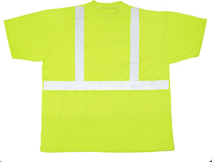 - High-visibility t-shirt features 2" silver reflective tape front and back