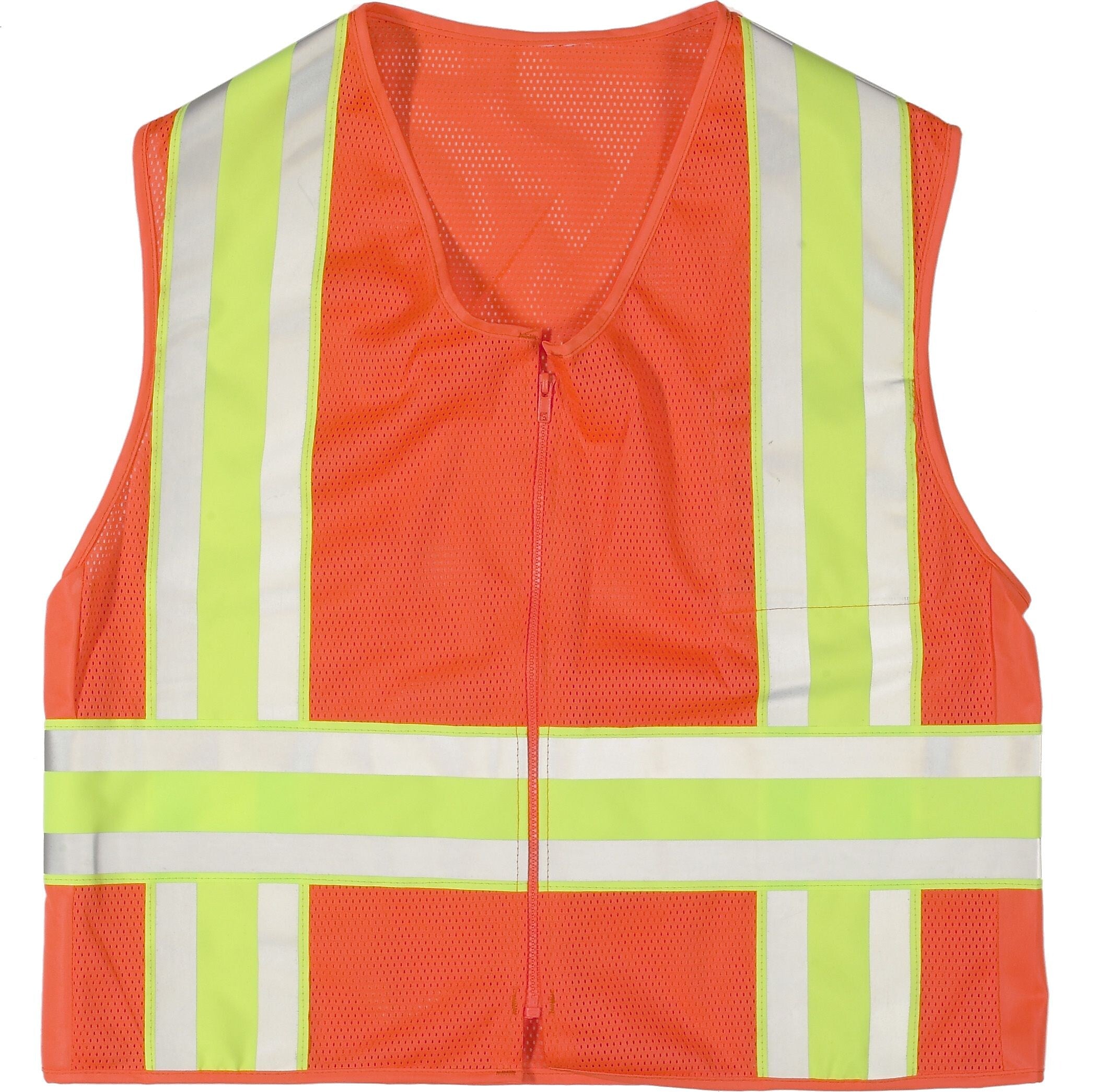 Mutual Industries MiViz Large ANSI class 2 orange deluxe dot mesh with pockets features zipper closure and provides high visibility. Dot mesh provides high visibility with its knit polyester construction.