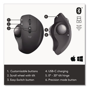MX Ergo Plus Advanced Wireless Trackball Mouse, 2.4 GHz Frequency/33 ft Wireless Range, Right Hand Use, Black