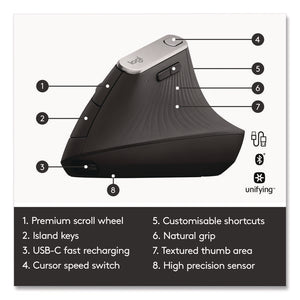 MX Vertical Advanced Ergonomic Mouse, 2.4 GHz Frequency/33 ft Wireless Range, Left/Right Hand Use, Graphite