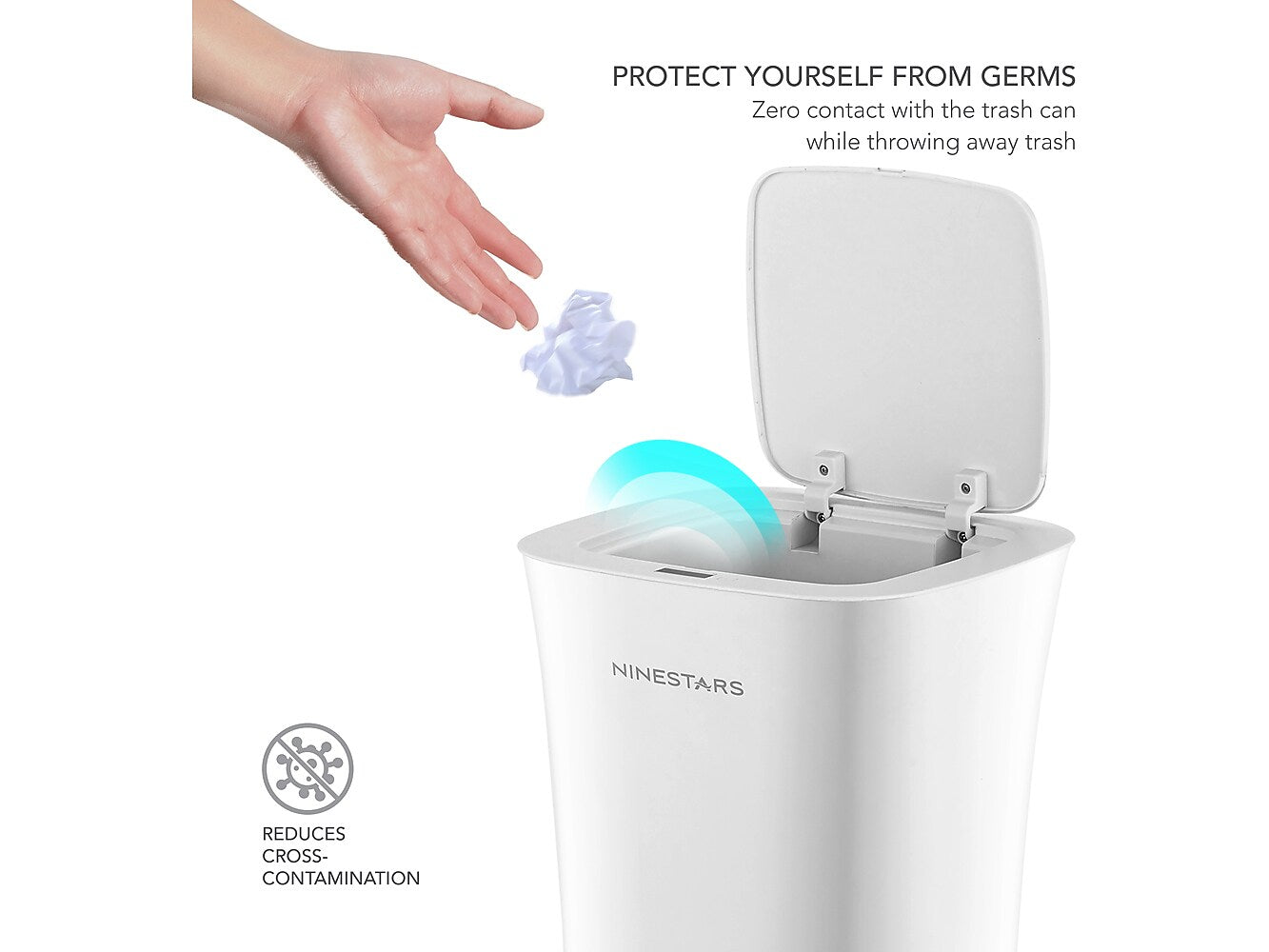 Nine Stars Plastic Sensor Trash Can, 2.6-Gallon, White (DZT-10-11)