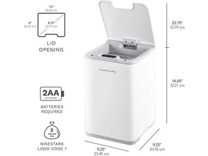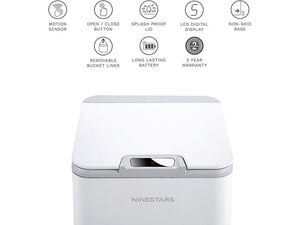 Nine Stars Plastic Sensor Trash Can, 2.6-Gallon, White (DZT-10-35)