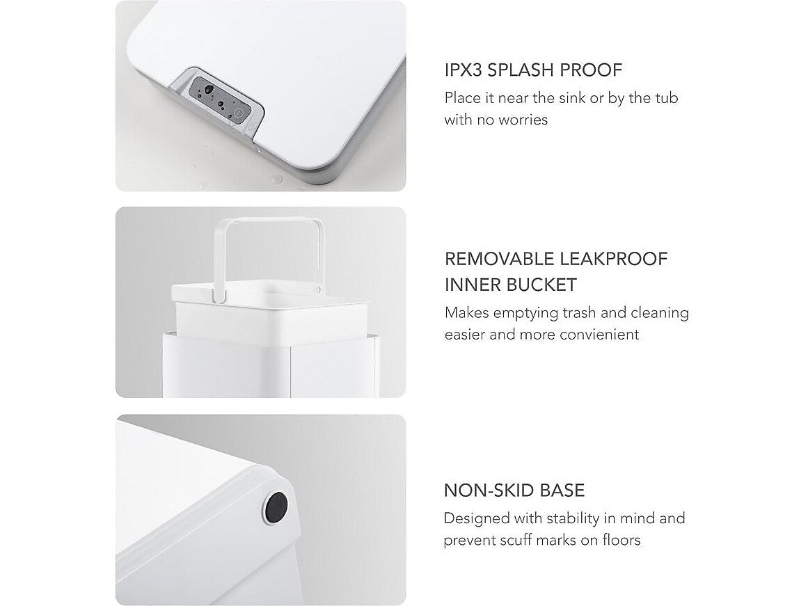 - Square sensor trash can provides hands-free lid operation for a more hygienic environment
