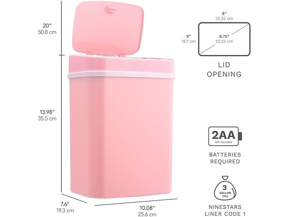 Nine Stars Plastic Sensor Trash Can, 3.2-Gallon, Pink (DZT-12-5PK)