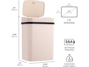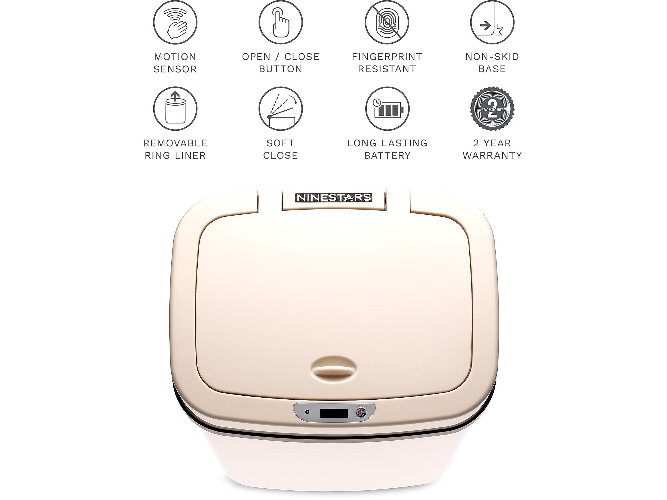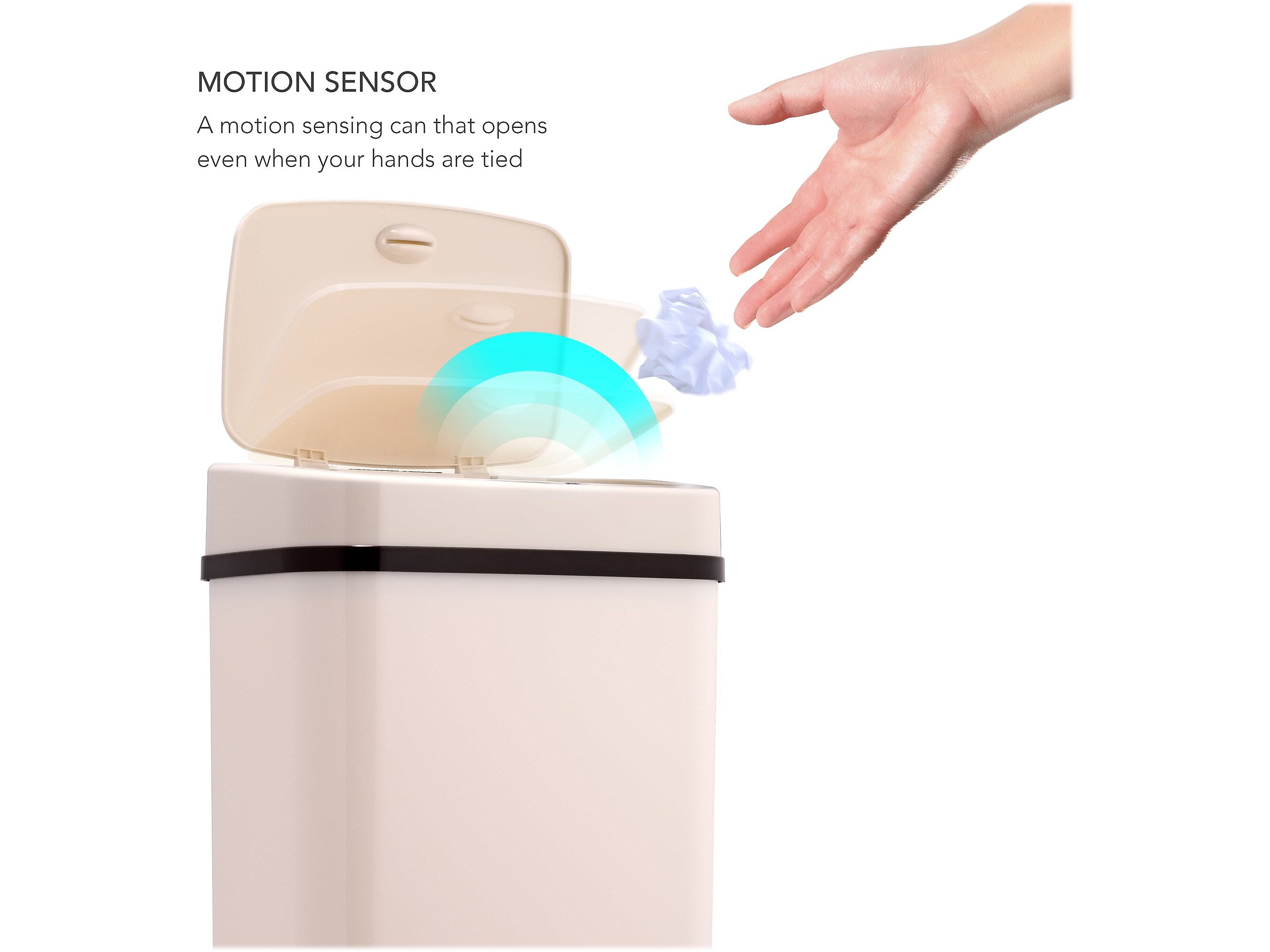 The Nine Stars motion sensor trash can is a great addition to any home. This plastic trash can is designed to fit seamlessly into any living space, be easily maintained and effortlessly operated. Simply move an object or hand above the strategically placed infrared motion sensor (located near the lip of the lid) and the lid will open automatically. Once the object or the hand is out of the sensor range, the lid will close automatically within seconds.