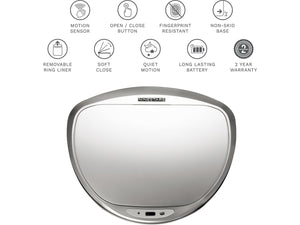Trash Can Feature | Open/close button, motion sensor, soft-closing lid, fingerprint-resistant, removable ring liner |
