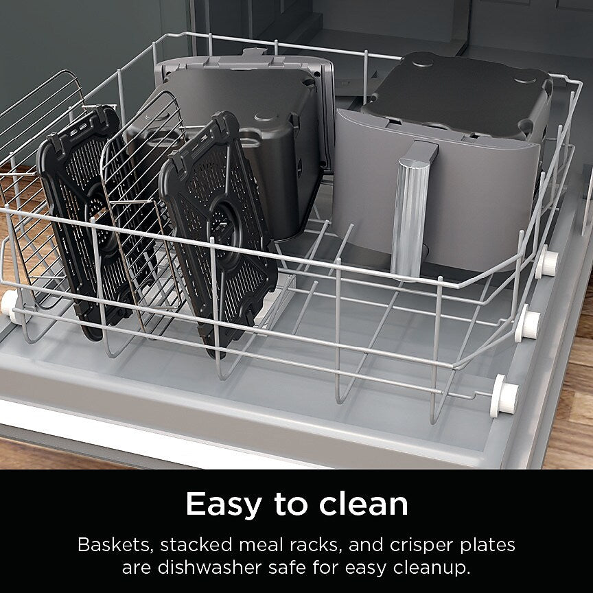 - WHAT'S INCLUDED: DoubleStack Air Fryer, (2) 5 Quart Baskets, (2) Nonstick Crisper Plates, (2) Stacked Meal Racks, Ninja Foodi Smart Thermometer, 9 Recipes, Additional Meal Options & Cooking Charts.