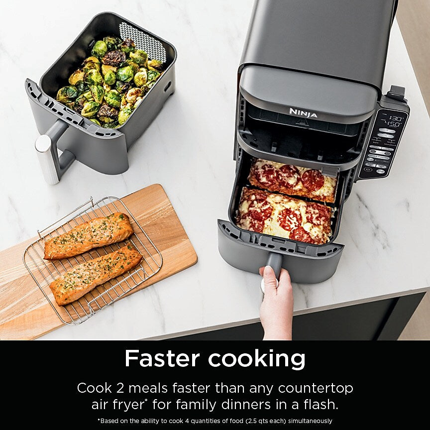 - DOUBLESTACK AIR FRYING TECHNOLOGY: Only Ninja's stacked design has 2 independently controlled baskets so you can cook 4 foods at once