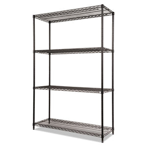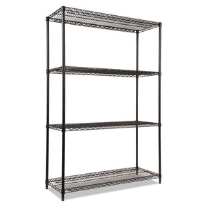 NSF Certified Industrial Four-Shelf Wire Shelving Kit, 48w x 18d x 72h, Black