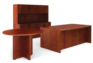 - Bundle contains: Bow-Front Desk Shell, 1 Lateral File, Mixed Storage Unit, Common Top, Hutch, 2 Pedestals and Round Table