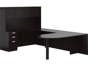 Create a professional, sophisticated workspace with this modern desk. It comes complete with three pedestal drawers and a 65.5-inch-tall hutch for organized storage of paper files and folders, and the American Espresso finish provides a sophisticated yet classic appeal. Set up a clutter-free computer system with the cable management grommet holes and dedicated CPU storage area of this 71 x 102-inch Offices to Go Superior Laminate peninsula desk.