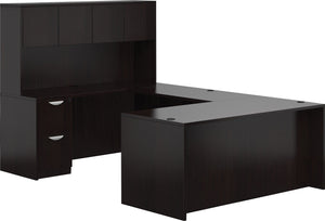 - Bundle contains: 1 hutch, 1 credenza shell, 1 flush bridge, 1 rectangular desk shell, 1 box/box/file pedestal, and 1 file/file pedestal
