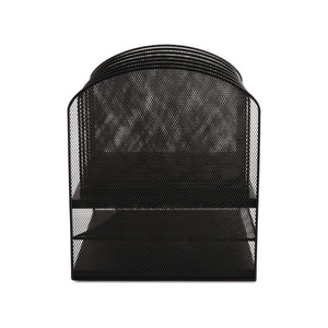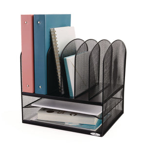 Onyx Mesh 2 Tray/6 Sorter Desktop Organizer transforms desktop clutter into an organized, more productive workspace. It features a stronger, thicker, commercial-grade steel with a powder coat finish for years of heavy, repetitive use. Organizer includes two horizontal trays to keep essential letters and documents at your fingertips and six 2" wide vertical sections for file folders, binders, notebooks, and textbooks. Ideal for use in cubicles, home offices, mailrooms and desks/tables.