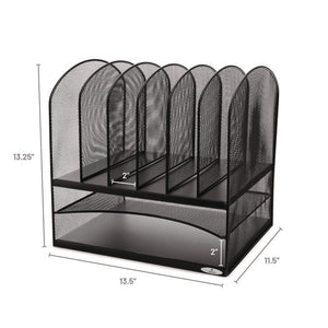 Onyx Mesh Desk Organizer With Two Horizontal And Six Upright Sections, Letter Size Files, 13.25" X 11.5" X 13", Black