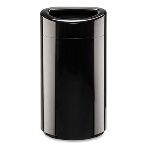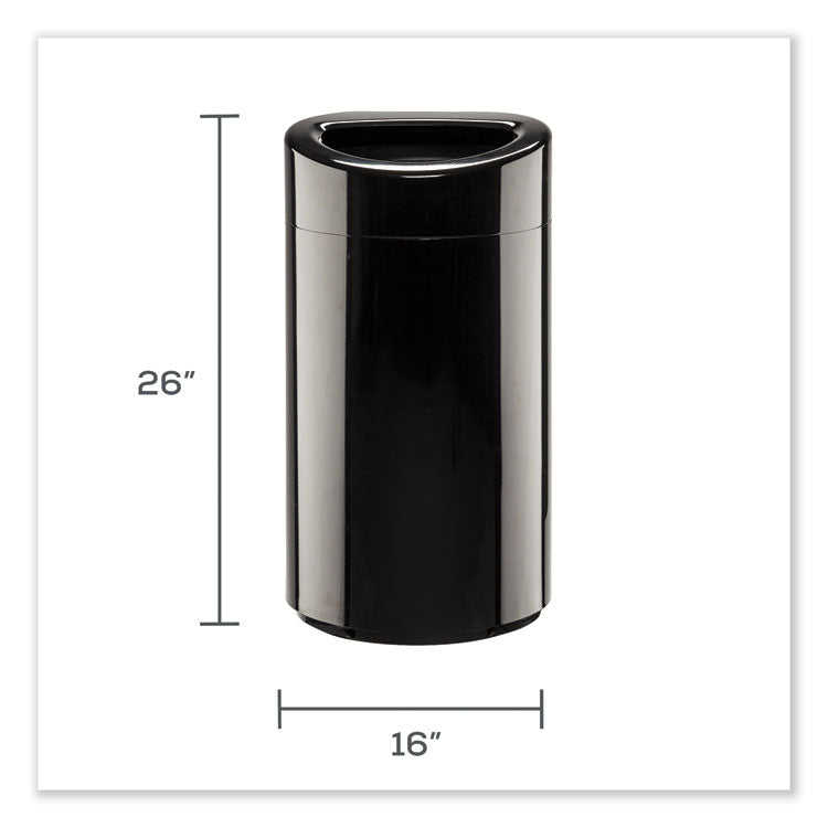 Open Top Oval Waste Receptacle, 14 gal, Steel, Black