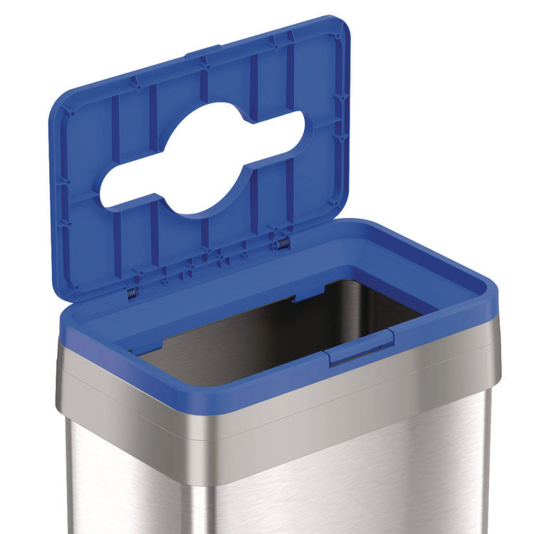 Open Top Recycling Bin with Wheels and Color-Coded Lid, 21 gal, Plastic/Stainless Steel, Silver/Blue