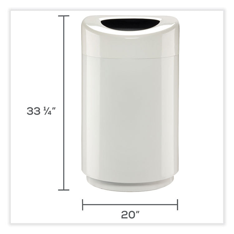 Safco Open Top Trash Receptacle with Liner combines contemporary styling with hands-free disposal to create a high-capacity trash can be ideal for offices, lobbies, reception areas and entryways. High quality, puncture-resistant steel frame features a durable powder coat finish to help resist chipping and scratching for years of dependable use. Lid hides unsightly trash bag and easily removes to reveal a peel-resistant rigid plastic liner for easy maintenance. Open top lets you discard waste without touching the cover, which may help reduce the spread of germs.