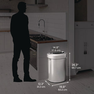 Upgrade your space with our sleek and efficient open top trash can! This bin is designed for quick and easy disposal with a convenient open top lid. Dual odor filters ensure that your surroundings stay fresh and clean, making it ideal for hospitality, medical, multi-family residential and commercial environments. The durable stainless steel body and ABS plastic lid offer a stylish and long-lasting solution, while the slim, space-saving design fits perfectly into any setting. Enhance your facility today with this practical and elegant trash can.