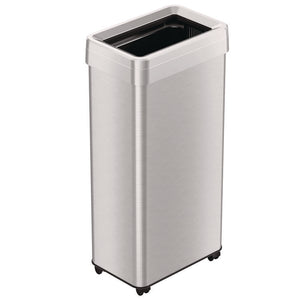 Upgrade your facility with our sleek and efficient open top trash cans, now featuring removable caster wheels for ultimate mobility and quick deployment! These bins are designed for swift and easy disposal with their convenient open top lids. Dual odor filters keep your surroundings fresh and clean, making them perfect for offices, hotels, government buildings, and hospitals. The durable stainless steel body and ABS plastic lid provide a stylish and long-lasting solution, while the slim, space-saving design integrates seamlessly into any professional setting. Enhance your space today with these practical, elegant, and mobile trash cans.