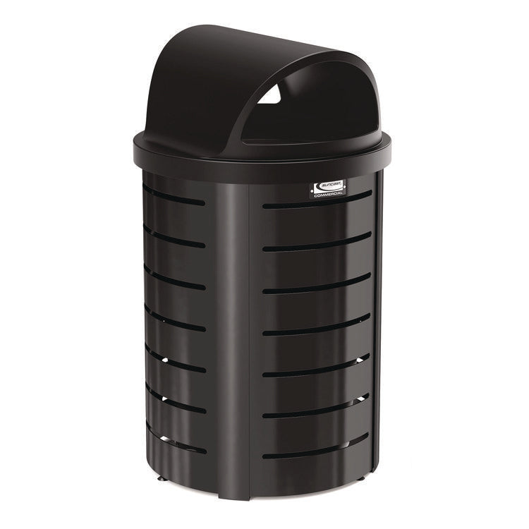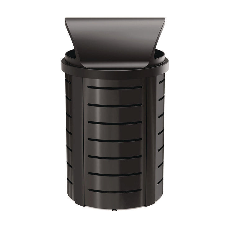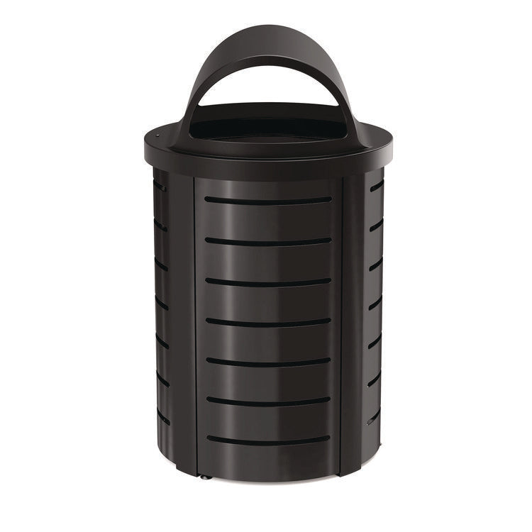 Outdoor Decorative Metal Trash Can with Roto-Molded Lid, 35.38 gal, Plastic, Black