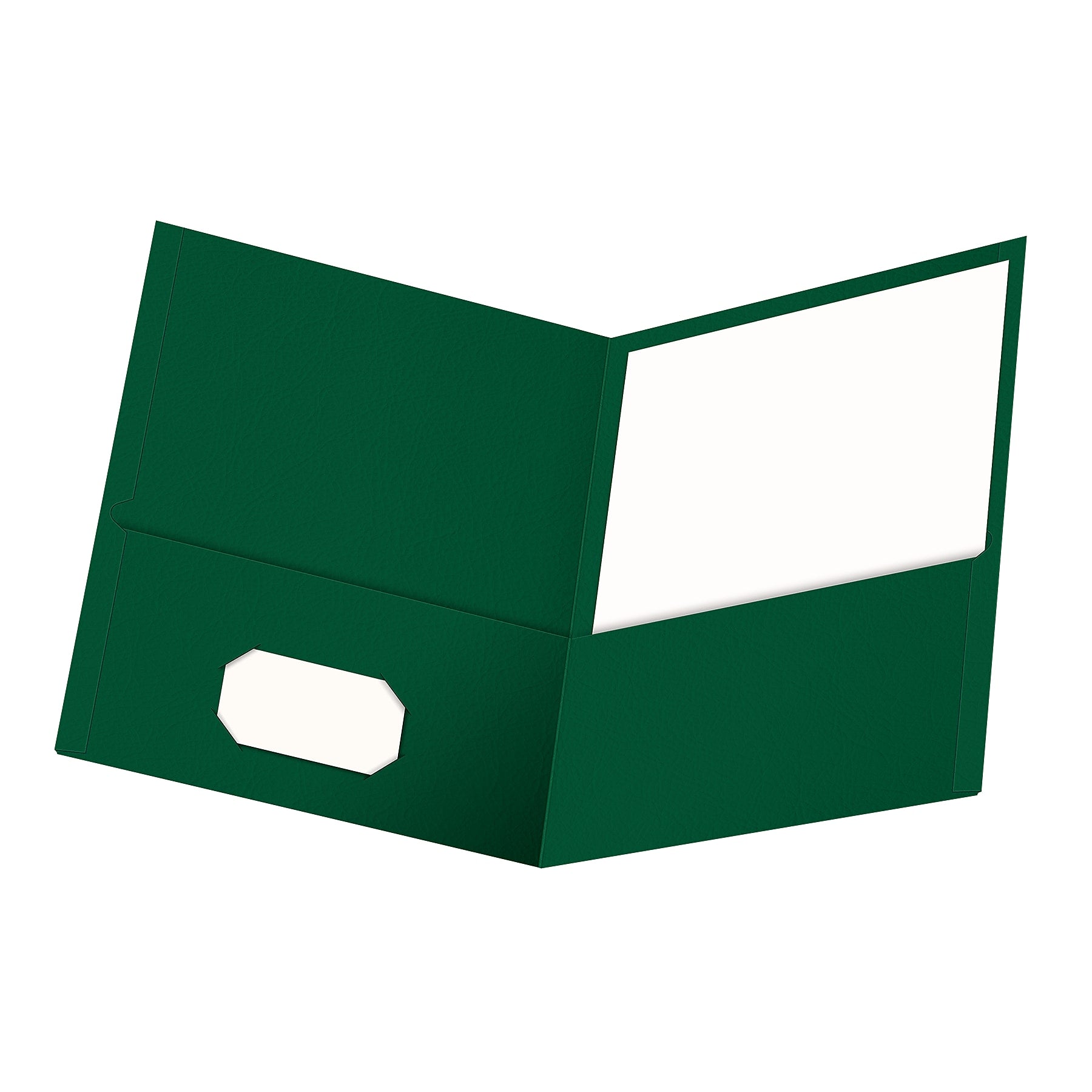 View Details- Presentation folders are made of hunter green textured paper stock for a professional appearance