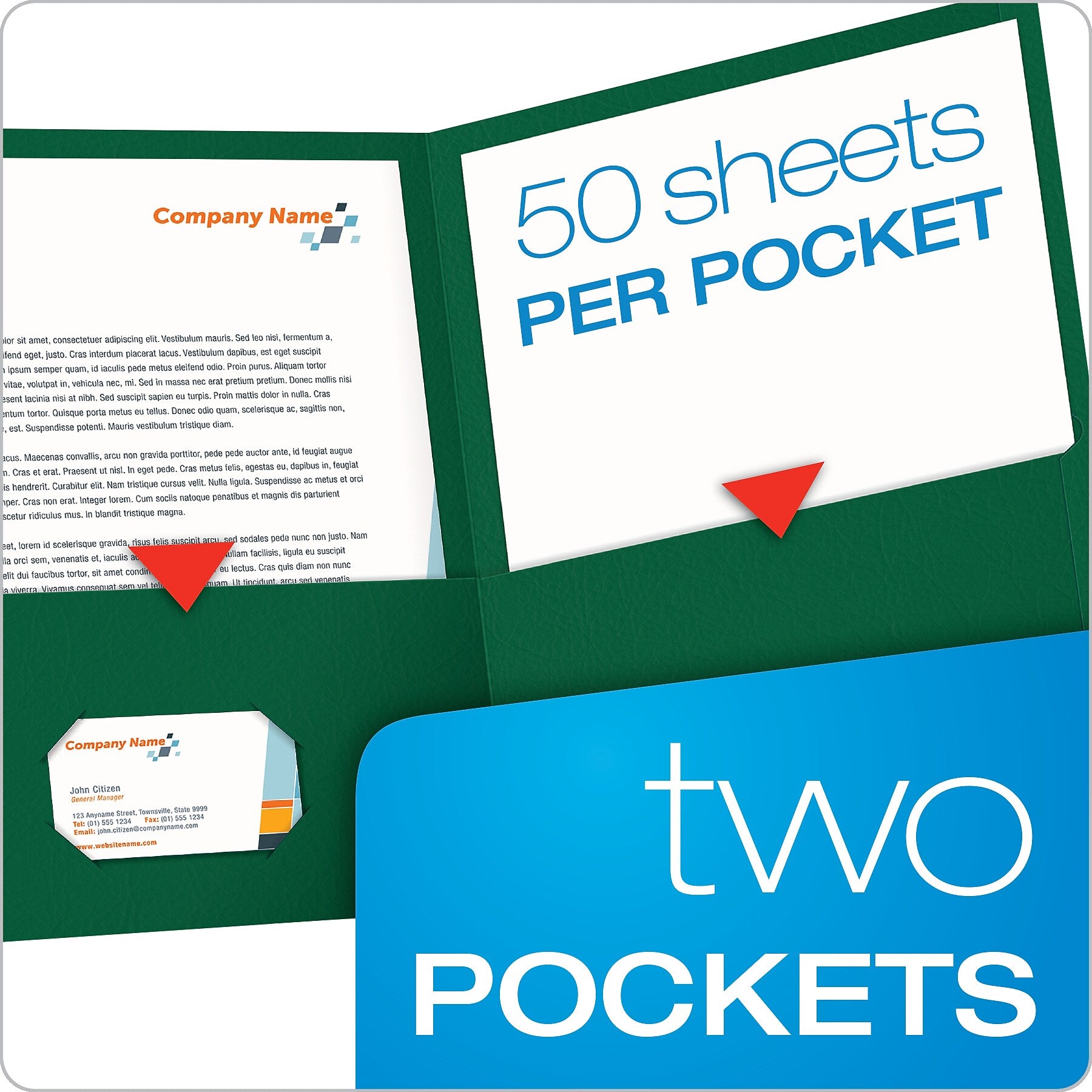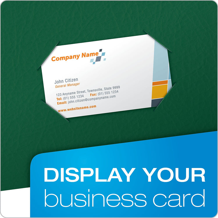 - Presentation folders are made of hunter green textured paper stock for a professional appearance
