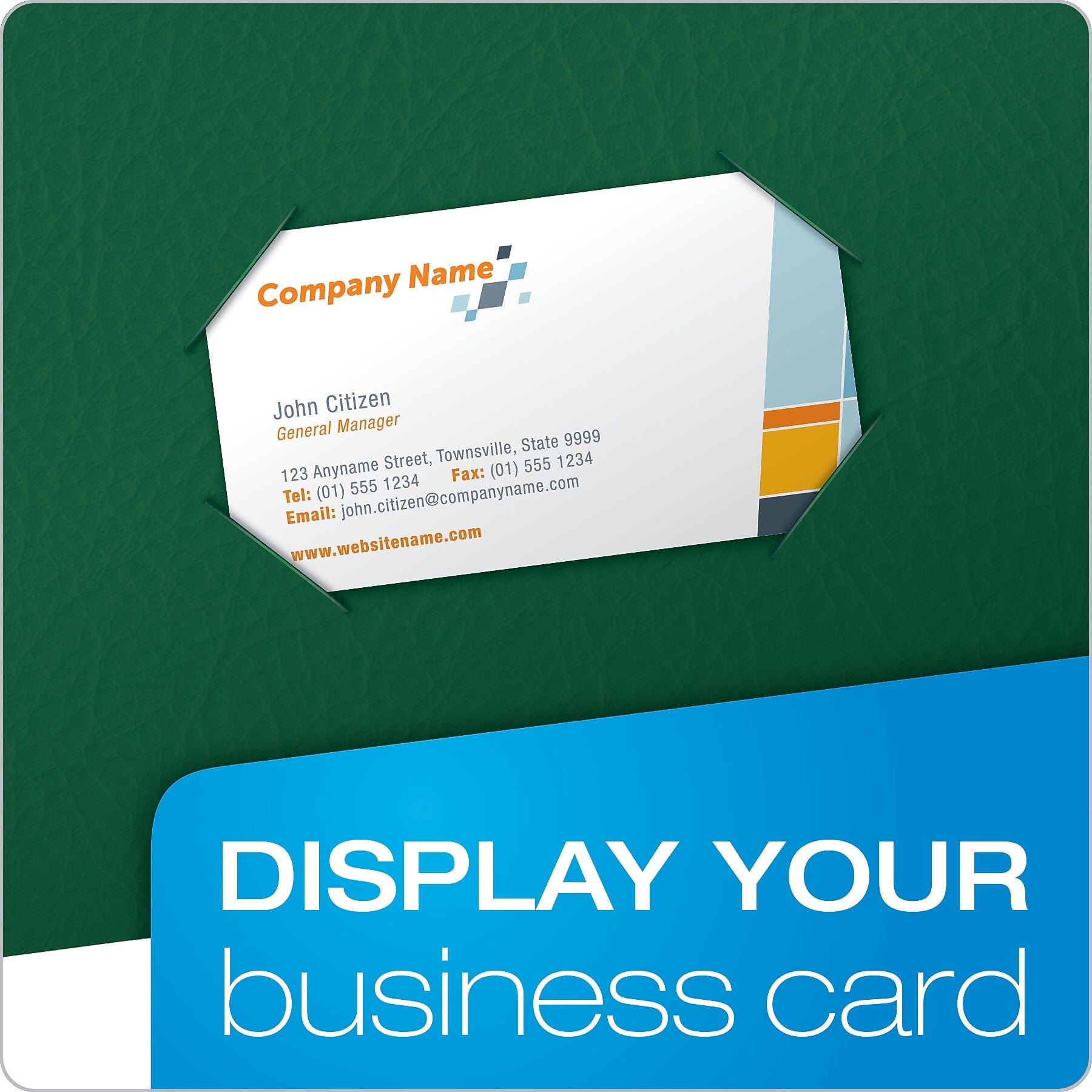 - Business card holder adds an extra professional touch to each folder