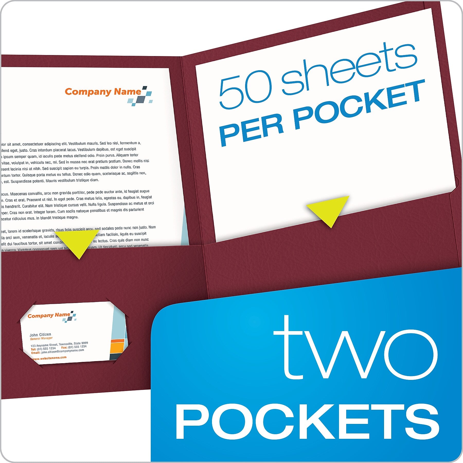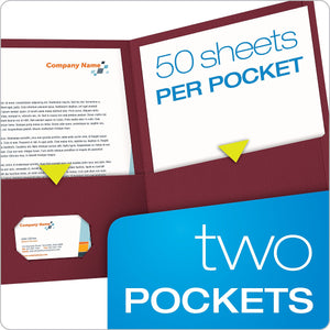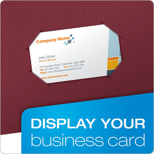 Keep important files properly organized with these burgundy dual-pocket folders. With a storage capacity of 100 sheets, each folder provides ample space for loose documents, presentations and reports. Use the built-in business card holder inside the front pocket of these Oxford folders to conveniently store business cards for easy access.