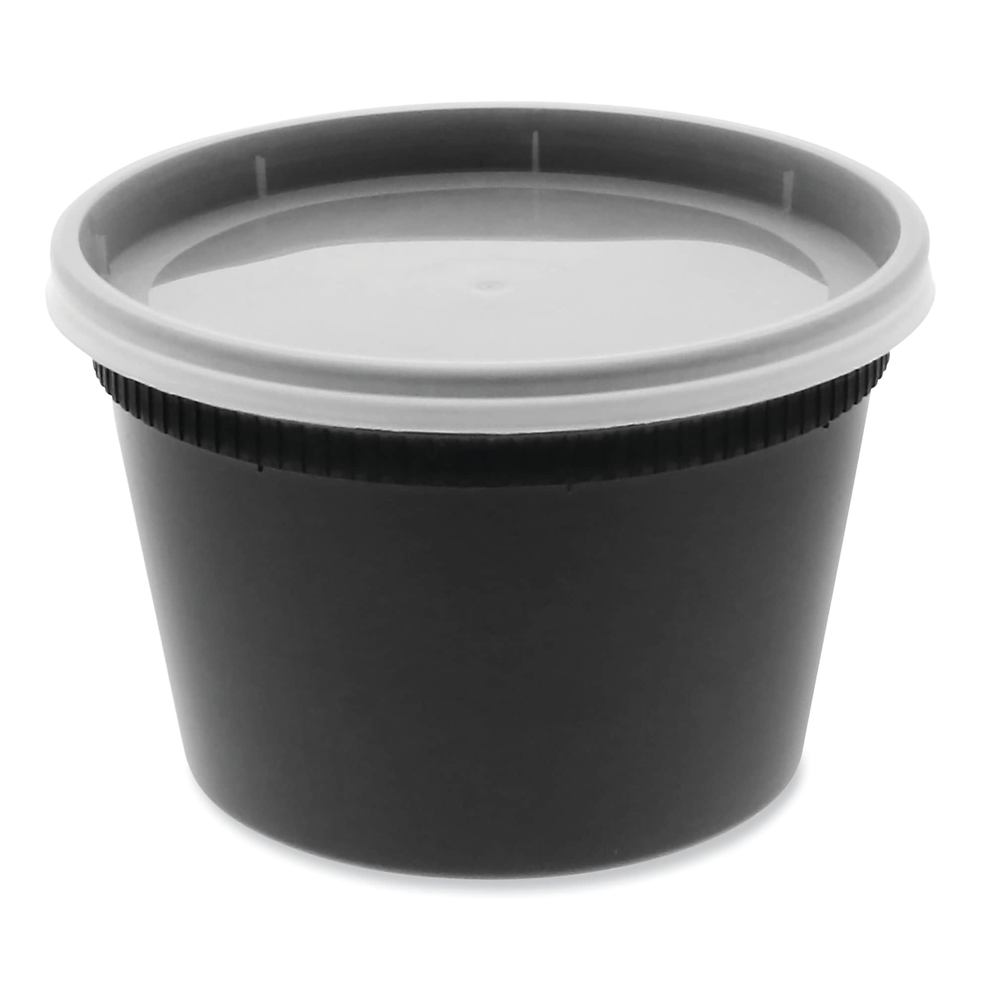 Pactiv Evergreen Newspring DELItainer Microwavable Container, 16 oz, 4.55 x 4.55 x 3.1, Black/Clear, Plastic, 240/Carton